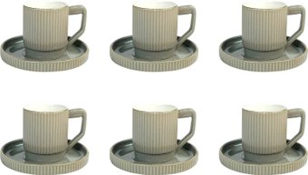 набор чашек на 6 персон, для кофе/для чая, 120 мл, фарфор, цвет: серый/коричневый