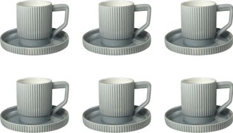 набор чашек на 6 персон, для кофе/для чая, 120 мл, фарфор, цвет: белый/серый