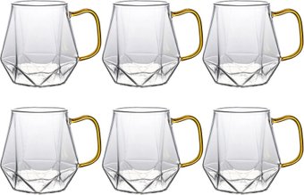 набор кружек на 6 персон, для кофе/для чая, 350 мл, стекло, цвет: прозрачный
