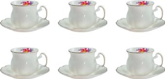набор чашек на 6 персон, для кофе/для чая, 100 мл, фарфор, цвет: белый/золотистый/желтый/розовый/фиолетовый