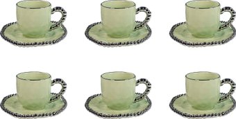 набор чашек на 6 персон, для чая, 230 мл, фарфор, цвет: зеленый/серебристый