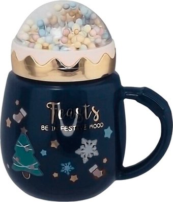 кружка, для чая, 470 мл, фарфор, цвет: золотистый/синий