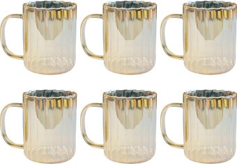 набор кружек на 6 персон, 360 мл, стекло, цвет: бежевый