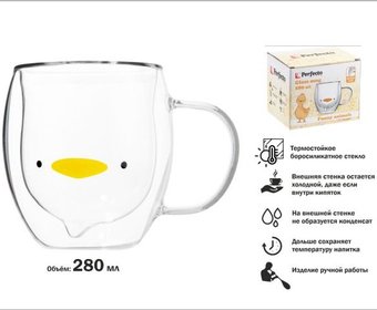 Кружка стеклянная ТМ PERFECTO LINEA серии Funny animals с двойными стенками выполнена из термостойкого боросиликатного стекла, которое выдерживает температуру от -20°C до +280°C. Ее можно использовать для горячих и холодных напитков. Корпус кружки благодаря особому составу стекла обладает уникальными характеристиками. Он тонкий, легкий и прочный одновременно. Прослойка воздуха между стенками сохраняет температуру напитков дольше обычного. Внешняя стенка кружки при этом остается холодной, даже если внутри кипяток. Если вы нальете в кружку ледяной напиток, то на внешней стенке не образуется конденсат. Напиток останется холодным, а стенка нейтральной, что удобно в летнее время. Поверхность устойчива к царапинам, она не помутнеет со временем даже при частом мытье в посудомоечной машине.