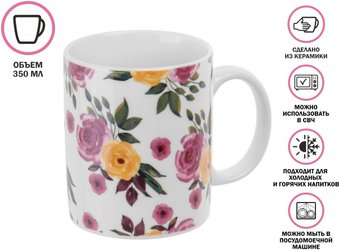 кружка, универсальное, 350 мл, керамика, цвет: белый/фиолетовый