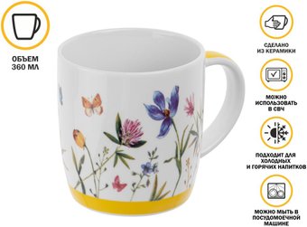 кружка, универсальное, 360 мл, керамика, цвет: белый/желтый