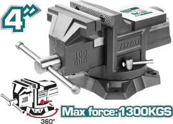 Описание Тиски слесарные поворотные 4 " 100 мм, с наковальней TOTAL THT6146 | |