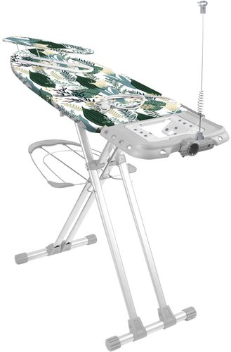 Описание ✅ Широкая гладильная доска с электросоединителем и подставкой под утюг и парогенератор. | |