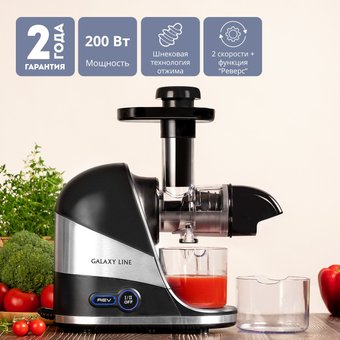 Описание ✅ Соковыжималка Galaxy Line GL0817 с горизонтальным отжимом бережно извлекает максимальное количество сока из фруктов, овощей и зелени, сохраняя все полезные вещества. | |