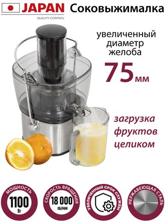 1100 Вт, центробежная, отверстие для загрузки: 75 мм, ёмкость для сока