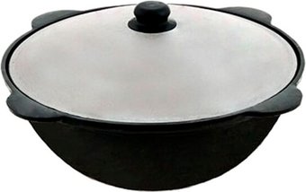 6 литров, чугун, подходит для приготовления на газу, открытом огне, крышка в комплекте