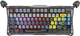 игровая для ПК, механическая, GravaStar x Kailh Speedy Mint, ход линейные, металлическая верхняя панель, интерфейс подключения - USB-A/радио (USB-A)/Bluetooth, подсветка, кириллица: нет, цвет черный/серый/желтый