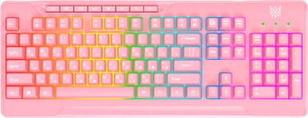 игровая, мембранная, пластик, интерфейс подключения - USB-A, подсветка, кириллица: нет, цвет розовый