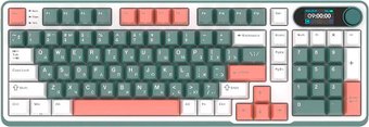 игровая для ПК, механическая, RK Chartreuse, ход линейные, пластик, интерфейс подключения - USB-A/радио (USB-A)/Bluetooth/USB-C, подсветка, кириллица: да, USB-хаб, цвет белый/зеленый/розовый