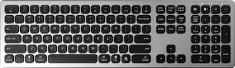 стандартная для ПК/для компьютеров Apple/для iPad/для устройств Android, ножничная, металлическая верхняя панель, интерфейс подключения - Bluetooth, кириллица: да, цвет серый