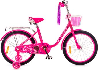 двухколесный велосипед с приставными колесами для девочек, возраст: 5-7 лет, рост: 100-115 см, сиденье: обычное (седло), колеса 18'', рама: сталь, вилка жесткая