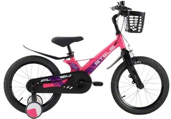 двухколесный велосипед с приставными колесами для девочек, возраст: 5-7 лет, рост: 100-115 см, сиденье: обычное (седло), колеса 16'', рама: магниевый сплав, вилка жесткая