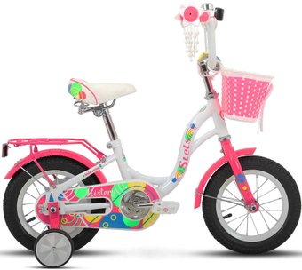 двухколесный велосипед с приставными колесами для девочек, возраст: 2-4 года, рост: 90-100 см, сиденье: обычное (седло), колеса 12'', рама: сталь Hi-ten, вилка жесткая