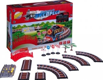 набор железной дороги, от 3 лет, питание батарейки, управление электронное - кнопка/переключатель