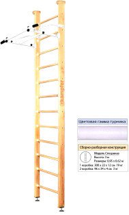 Описание Домашний спортивный комплекс Swedish Ceiling 3 м – это красивая, надежная и безопасная шведская стенка из натурального дерева, дополненная турником. Для стоек применена сосна, для ступеней – береза. | |