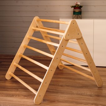 Описание Треугольник является одним из самых универсальных и полезных элементов для развития ловкости, чувства баланса, моторных навыков детей с 1 года. Прекрасная альтернатива шведским стенкам и многофункциональным спортивным уголкам. Имеет анатомически правильные углы наклона и расстояние между перекладинами. Конструкция треугольника позволяет малышу видеть ступеньки и контролировать все свои движения. | |