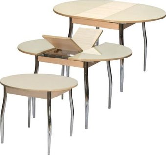 круглая, раздвижной, 900x900 мм, высота 730 мм, в разложенном виде 1200x900x730 мм, материал: ЛДСП (столешница), хромированная сталь (опоры), бежевый