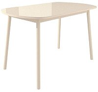 овальная, раздвижной, 1200x700 мм, высота 740 мм, материал: стекло/ЛДСП (столешница), окрашенная сталь (опоры), бежевый