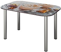 прямоугольная, 1000x600 мм, высота 730 мм, материал: ЛДСП/стекло (столешница), хромированная сталь (опоры), белый/коричневый/рисунок