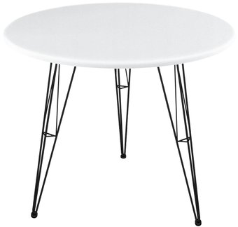 круглая, 800x800 мм, высота 755 мм, материал: МДФ (столешница), окрашенная сталь (опоры), белый