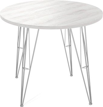 круглая, 800x800 мм, высота 745 мм, материал: ЛДСП (столешница), окрашенная сталь (опоры), бежевый/серый