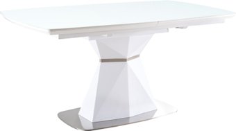 прямоугольная, раздвижной, 1600x900 мм, высота 760 мм, в разложенном виде 2100x900x760 мм, материал: МДФ/стекло (столешница), хромированная сталь/МДФ (опоры), белый