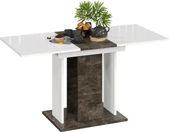прямоугольная, раздвижной, 1100x678 мм, высота 750 мм, в разложенном виде 1456x678x750 мм, материал: ЛДСП/стекло (столешница), ЛДСП (опоры), белый/темно-серый