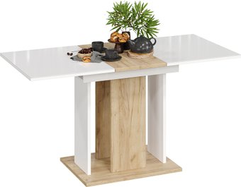прямоугольная, раздвижной, 1100x678 мм, высота 750 мм, в разложенном виде 1456x678x750 мм, материал: ЛДСП/стекло (столешница), ЛДСП (опоры), бежевый/белый