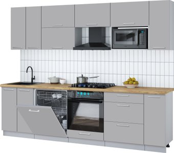 линейная, длина 270 см, ширина 60 см, каркас ЛДСП, фасад МДФ крашеный, установка мойки: врезная мойка, ширина шкафа под мойку 50 см