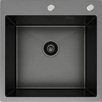 врезная вровень со столешницей, нержавеющая сталь, фактура: с текстурой, размеры: 50x50 см, глубина чаши: 21.3 см, клапан-автомат