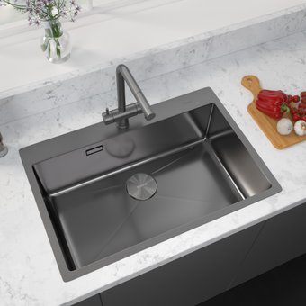 Поверхность мойки обработана по технологии PVD (физическое осаждение из паровой фазы) и имеет гладкую поверхность без пор, что делает ее еще более устойчивой к истиранию, царапинам и коррозии, а также обеспечивает исключительные эстетические характеристики.