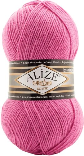25% шерсть - 75% акрил, 280 м, 100 г, розовый, нить однотонная, структура классическая, для спиц 3-4 мм, для крючков 3-4 мм
