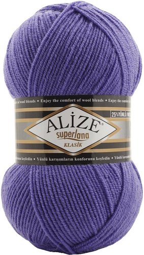 25% шерсть - 75% акрил, 280 м, 100 г, фиолетовый, нить однотонная, структура классическая, для спиц 3-4 мм, для крючков 3-4 мм