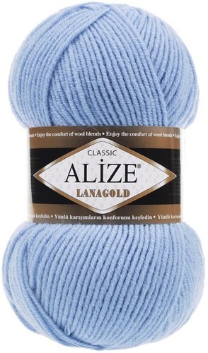 акрил (51%), шерсть (49%), 240 м, 100 г, голубой, нить однотонная, структура классическая, для спиц 4-6 мм, для крючков 4-6 мм