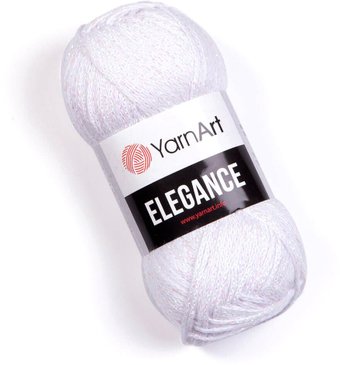 88% хлопок, 12% металлик., 130 м, 50 г, белый, нить однотонная, структура классическая, для спиц 3.5-4 мм