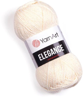 88% хлопок, 12% металлик., 130 м, 50 г, молочный, нить однотонная, структура классическая, для спиц 3.5-4 мм
