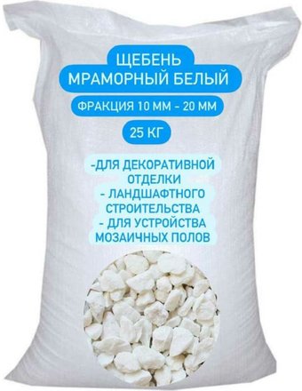 материал: мрамор, цвет: белый, вид щебня: натуральный, размер фракции 10-20 мм