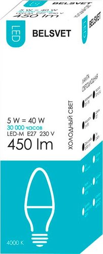 светодиодная лампа, 4000К, 450 Лм, поверхность матовая, напряжение 220 В