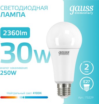 светодиодная лампа, 4100К, 2360 Лм, поверхность матовая, напряжение 220 В