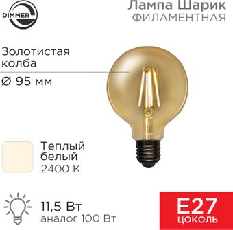 Описание Филаментная лампа REXANT служит одновременно источником искусственного освещения и элементом декора. Используется для освещения комнат, домов, гостиниц, кафе, и других объектов. | |
