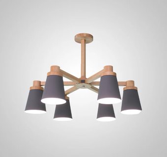 Описание Минималистичная скандинавская люстра с разноцветными коническими плафонами на деревянном каркасе с натуральной текстурой. | |