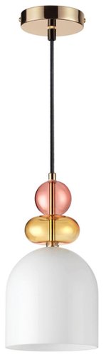 подвесная люстра, плафон белый (стекло), каркас золотистый