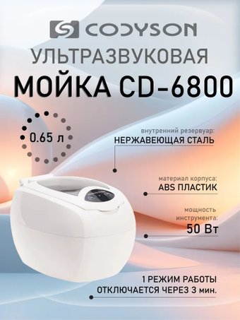 Описание ✅ Ультразвуковая мойка Codyson CD-6800 — это отличное решение для тщательной очистки маникюрных инструментов, стоматологических и медицинских принадлежностей, а также ювелирных изделий и электронных комплектующих. Она работает по принципу кавитации, что позволяет эффективно удалять загрязнения даже в самых труднодоступных местах. | |
