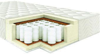 Описание Матрас на независимом 7-ми зонном пружинном блоке AGRO (Германия). Кокосовая койра с обеих сторон матраса придает этой модели дополнительную жесткость, а пенополиуретан защищает ее и позволяет матрасу прослужить долгие годы. | |