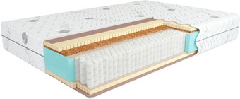 Замечательный матрас! Одна сторона очень мягкая, вторая среднне-жесткая. Приобрел по причине устранения ночных болей поясницы (межпозвоночная грыжа). Сплю уже неделю как младенец. Прежде спал на жестком матрасе, утром еле сползал с кровати. Однажды ночевал у друзей на очень мягком матрасе и понял, что поясница не тревожит. Не знаю почему всюду советуют жесткие поверхности при поясничных заболеваниях позвоночника, но у меня чем жестче поверхность, тем мучительней сон. Остановился на Кондоре, так как склейка элементов на этом производстве делается горячим расплавом и матрас не имеет запаха летучих растворителей. Чехол предпочел трикотажный, хлопковый, на старом был жаккард, протерся местом на 4-м году, да и жару на хлопке поприятнеДостоинства: Нет запаха химии. Качественный. Гарантия 3 года